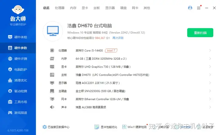 先来瞧硬件参数这一块。浩鑫 DH670 搭载的是英特尔 H670 芯片组