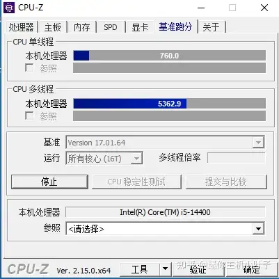 用 CPU - Z 一测,这 CPU 单核得了 760 分,多核是 5362 分。