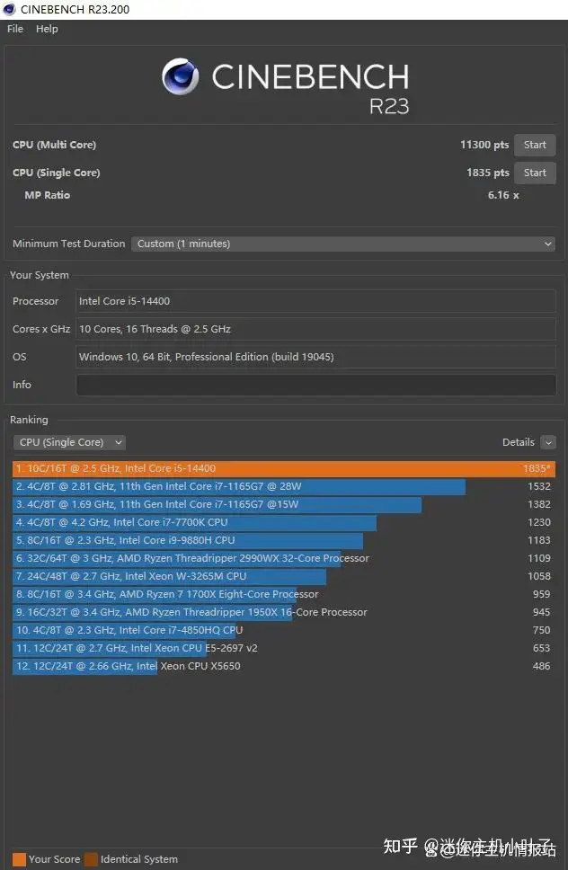 但是我们也不必灰心,我们还有 CINEBENCH R23,这是一款专门测试 CPU 的跑分软件。