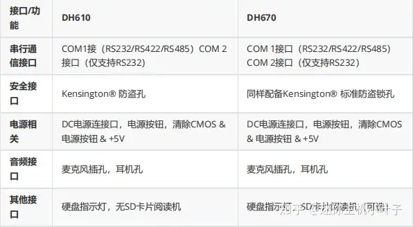 - 下附 DH610 与 DH670 接口对比: