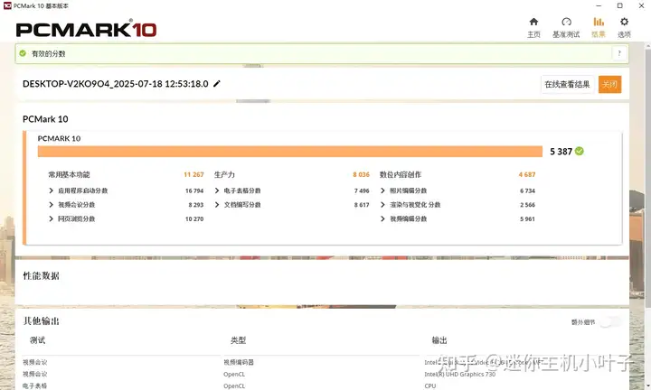 在办公、生产力表现上,这里使用 PC Mark 来进行测试,浩鑫 DH670 测试总得分 5387,
